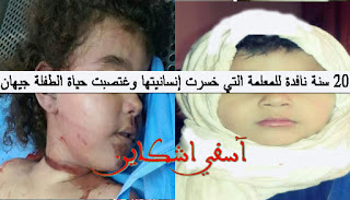 حسمت المحكمة الإبتدائية يوم أمس في موضوع جريمة القتل البشعة التي تعرضت لها الطفلة البريئة وعصفورة الجنة “جيهان” التي دهبت ضحية معلمة لم تشفع لها مهنتها أن تكون آدمية، هذه القضية التي شغلت الرأي العام منتصف شهر يونيو من السنة الماضية، حيت قضت المحكمة الإبتدائية يوم أمس الخميس على المتهمة “عائشة م.” بالسجن 20 سنة وعشرة ملايين كغرامة مالية.