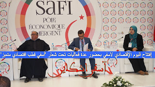 نظم المركز الجهوي للاستثمار جهة مراكش آسفي بالتعاون مع عمالة إقليم آسفي وجمعية حوض آسفي ومجلس الجهة، والمجلس الإقليمي لاسفي، ومجموعة المكتب الشريف للفوسفاط وسافييك اليوم الخميس 18 يناير 2018 بمقر ملحقة جهة مراكش آسفي، اليوم الاقتصادي لاسفي، الذي نظم تحث شعار”اسفي قطب إقتصادي متميز”، والذي كان فرصة للنقاش والتداول بين مختلف الفاعلين من رجال أعمال وممثلي المصالح الإدارية المركزية واللامركزية، حول فرص الإستثمار بالجهة، والبحث عن سبل التنمية بإقليم آسفي وكذا المشاريع المهيكلة المندمجة خاصة في مجال البنية التحتية والمينائية.